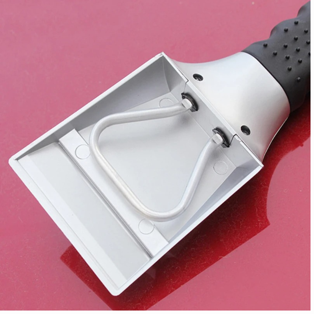 Den är tillverkad av robust metall och frosttålig högkvalitativ plast, lätt att hålla i, och designad med ett halkfritt handtag som ger tryggt grepp även i minusgrader. Den inbyggda skrapkanten tar dessutom bort överflödigt vatten så du får kristallklar sikt utan risk för repor.